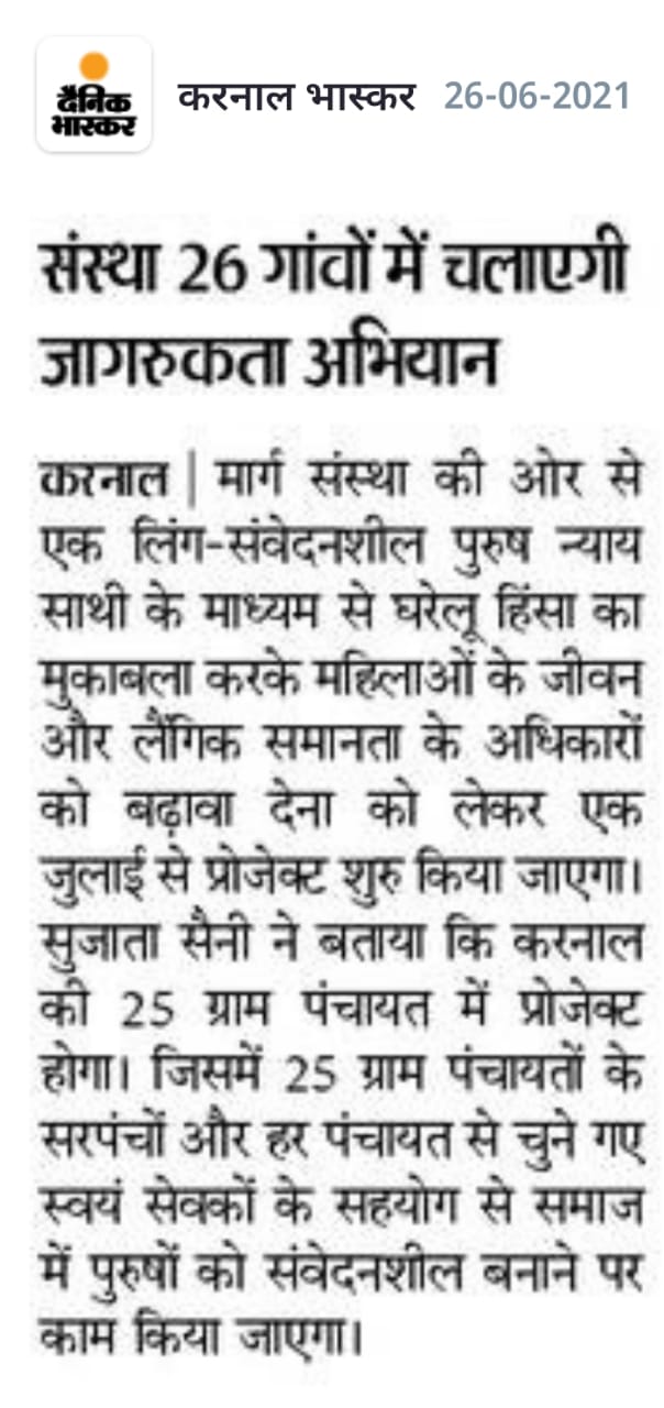 Promoting Women's rights to life and gender equality by combating domestic violence through gender sensitive men justice partners in Haryana ( District Karnal)